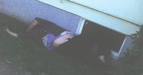 The above picture is of ex-friend Lou Perfidio. He's not dead in this picture—he's merely passed out because he drank too much. The photo was taken outside my Portland house in the summer of 1995. Lou had moved up from Tucson, intending to film a cable-access program with me called The Nigger Show.